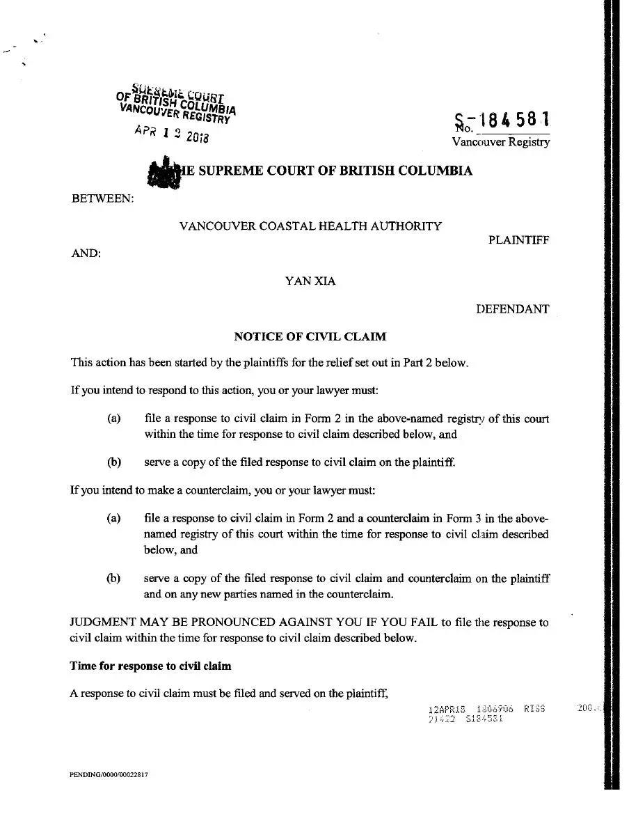 温哥华沿岸卫生局(Vancouver Coastal Health,VCH)正在通过法律手段向这名产妇追债。