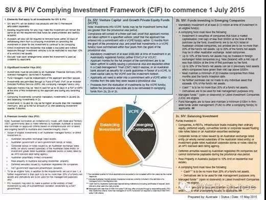 2015年5月15日,澳大利亚贸易与投资委员会宣布了500万澳币重大投资者签证(SIV)最新的投资框架规定。