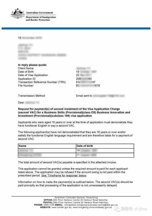 澳洲移民局发出的通过函