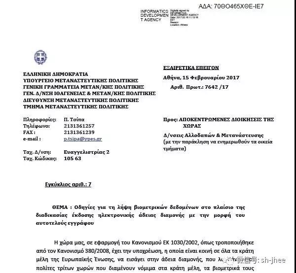 希腊的居留许可在2017年2月做出重大调整,从核发居民签证纸形式(贴护照),更改为独立的永久居留证,希腊内政部移民局于2017年3月开始发放与护照分离的独立永久居留卡。