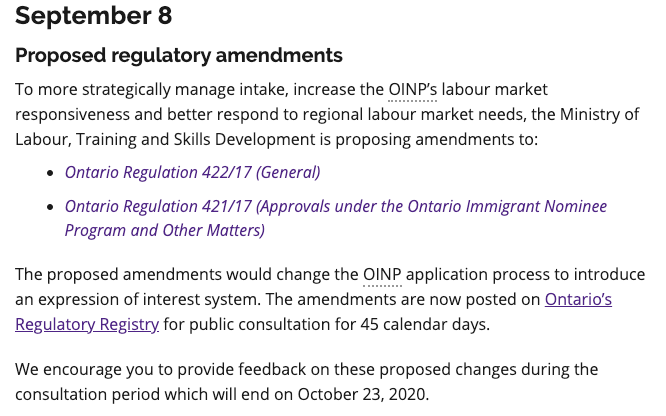 加拿大劳动日后的第一个工作日,安省移民厅(OINP)公布重磅消息:安省雇主担保(包括海外劳工类,国际学生类和紧缺职业类),以及安省硕博省提名类,全部改为EOI意愿表达打分系统,分高者获邀!