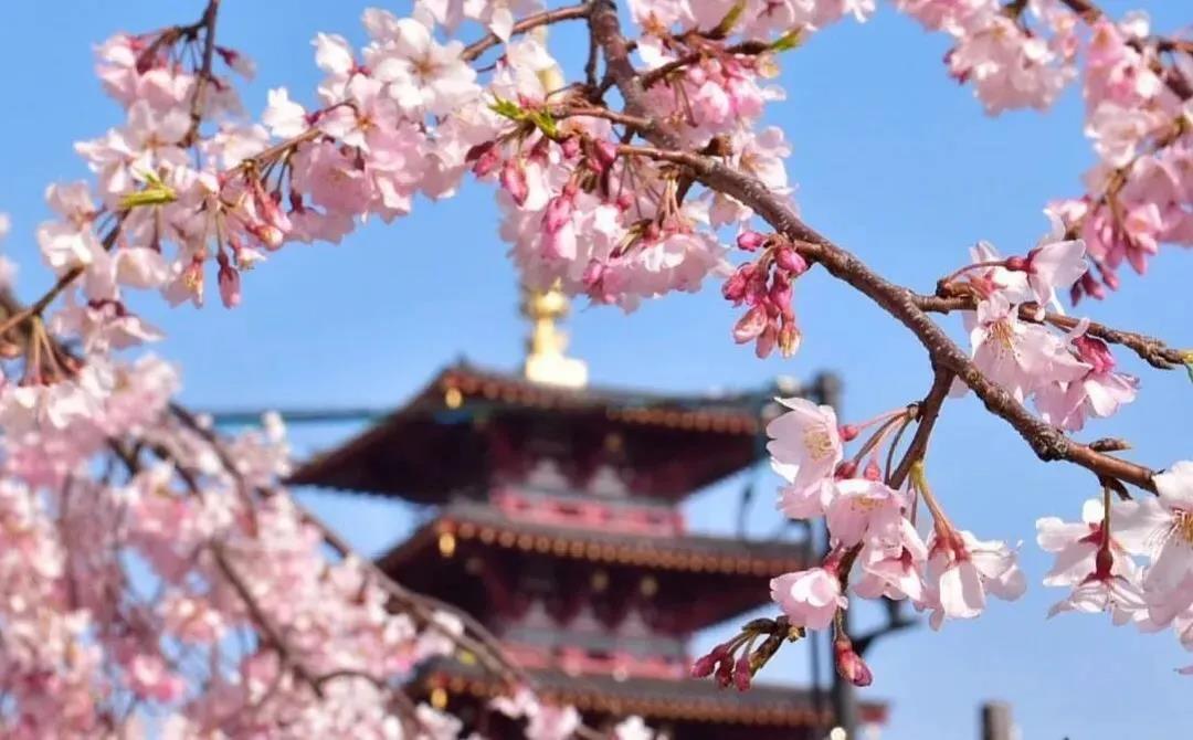 樱花的粉嫩和朱红的墙瓦交织,陪伴着的四天王寺度过了漫长的时光,也希望有一天能够填满大家对大阪的美好回忆!