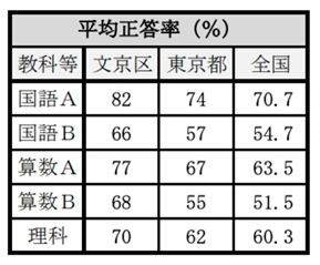 下面这个图是2018年进行的一项六年级学生的学力调查。从数字上看,文京区学生主要学科的学力水平不仅远超全国平均水平,而且在东京都的平均之上,优秀的基础教育资源为知名大学源源不断的输送着人才。