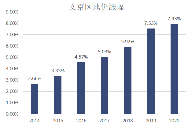 即使在新冠疫情的影響下,其地價漲幅依然強勁,連續7年上漲,2020年的漲幅高達7.93%!