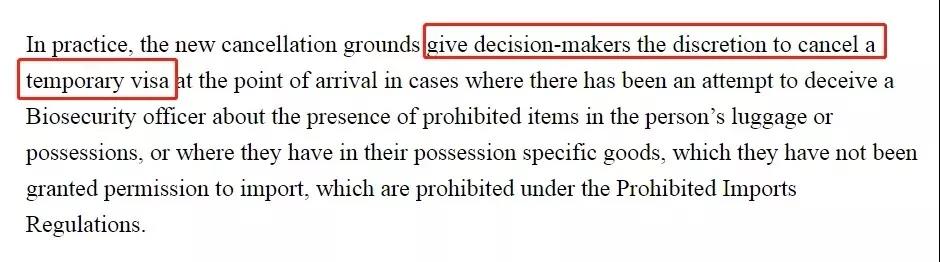 鉴于此,澳洲政府这次特地修改了以前的法规,赋予了检查人员取消签证的权利。