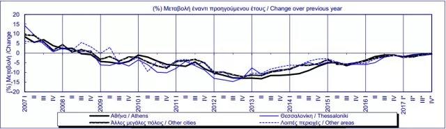 上图可以看出,由于08年的金融危机希腊房价急剧下降,直到13年房地产行业开始回暖,下降指数开始降低。2017年季度部分地区已经出现房价的增长。