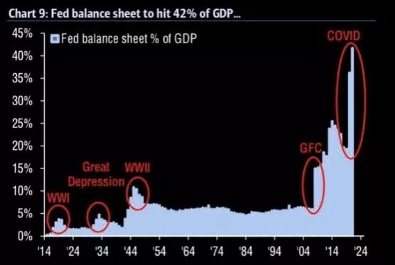 据统计,去年美国向市场发的钱达到一个超高点,印的美元占到了历史上供应的所有美元的21%,这是“核动力印钞机”制造出来的“货币洪水”啊!