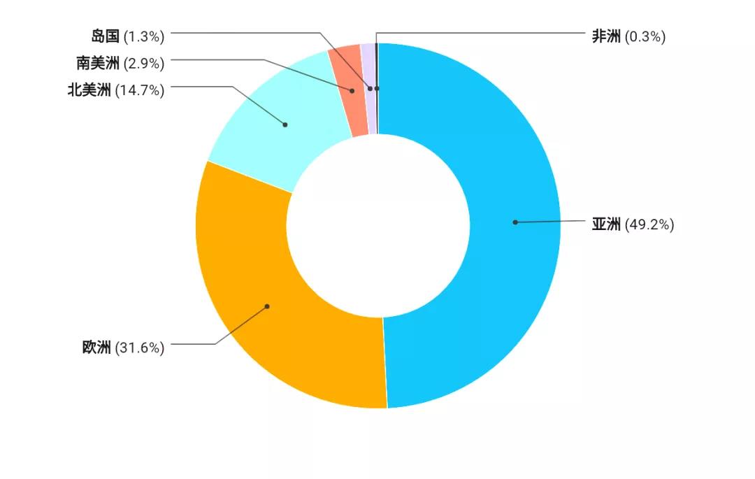 而北美的E-2签证发放占有率与上一财年基本持平,欧洲则有所降低。亚洲、欧洲和北美是E-2签证发放的主要地区。