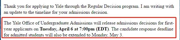 今年藤校RD阶段的放榜时间推迟至美东时间2021年4月6日下午点放榜,即北京时间4月7日早上8点。