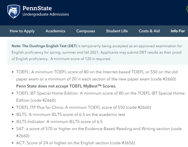 今年由于受疫情影响,学校也暂时可接受多邻国语言成绩申请2021春季、夏季、秋季课程,最低要求120分。
