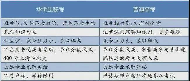 华侨生联考和普通高考主要特点对比
