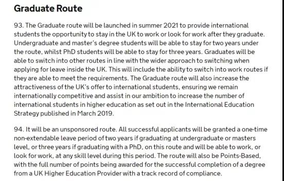 3月4日,英国移民局又紧跟着宣布了移民法最新修订通知《Statement of changes to the Immigration Rules:HC 1248》。其中最引人关注的是:官宣了关于英国毕业生“PSW签证”细则。