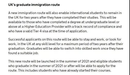 2)对于2021年夏季毕业的留学生们要求在6月21日之前抵达英国,在英国完成最后一学期的学习,则可以申请PSW签证。